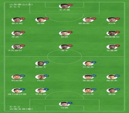 中超泰山VS云南首發陣容出爐:澤卡復出,“三叉戟”重裝上陣