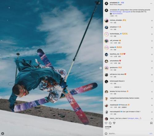 而他長期使用的 Armada 雪板則以一種“順便被看見”的方式,潛移默化地進入受眾視野。對年輕滑雪者來說,Harlaut 的形象本身就代表著某種“酷”,而這個“酷”也被直接延伸到品牌上。