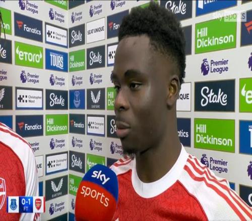 北京時間12月21日,英超第17輪,埃弗頓0-1阿森納。賽后,阿森納球員薩卡接受了采訪。