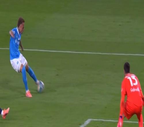 第31分鐘,那不勒斯還是左路進(jìn)攻,還是麥克托米奈,他突入禁區(qū)倒三角似傳似射往門(mén)前兜,門(mén)將拉瓦利亞奮力將球撲出。第38分鐘,那不勒斯右路壓上,波利塔諾45度角處拿球橫傳,內(nèi)雷斯接球轉(zhuǎn)身擺脫防守,隨后持續(xù)內(nèi)切到禁區(qū)前沿左腳大力兜射,皮球直掛球門(mén)遠(yuǎn)端死角,那不勒斯1:0首開(kāi)紀(jì)錄。