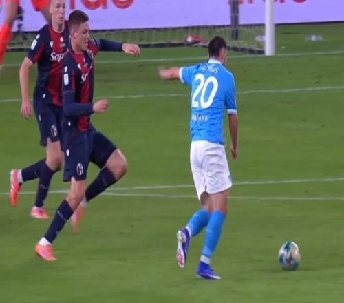那不勒斯是上個(gè)賽季意甲冠軍,博洛尼亞則是意大利杯冠軍,兩隊(duì)這次超級(jí)杯半決賽分別擊敗了上個(gè)賽季的意大利杯亞軍AC米蘭和意甲亞軍國(guó)米。開(kāi)場(chǎng)后兩隊(duì)也是勢(shì)均力敵展開(kāi)對(duì)攻,第5分鐘,博洛尼亞左路快速反擊,坎比亞吉突入禁區(qū)搶點(diǎn)時(shí)被回防的波利塔諾和拉赫馬尼包夾,爭(zhēng)搶中坎比亞吉摔倒,主裁沒(méi)有吹罰點(diǎn)球。第10分鐘,那不勒斯左路快速反擊,曼聯(lián)舊將麥克托米奈帶球斜切至中路精妙斜塞左側(cè),埃爾馬斯跟進(jìn)突入禁區(qū)接球獲得單刀良機(jī),只是他沒(méi)有把握住機(jī)會(huì),超近距離推射竟然是打偏了。