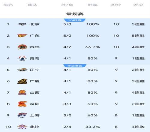 吉林隊VS北控隊。吉林隊開局連續輸球之后,很快取得三連勝,北京隊則是恰恰相反,開局連續贏球,隨后三場連續輸球,可謂是高開低走。