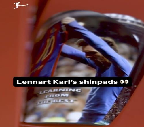 虛假的兒皇夢卡爾的護腿板印的是:梅西絕殺皇馬、曬球衣!
