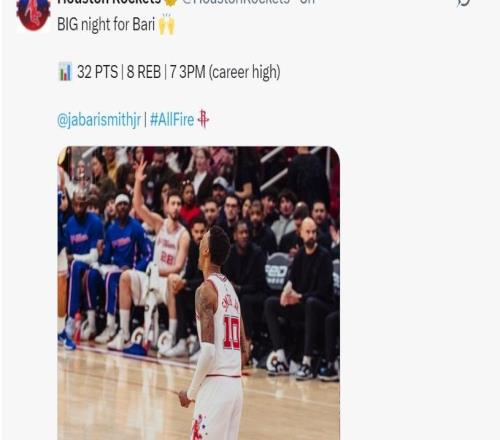 北京時間1月19日,在NBA常規賽中,火箭主場119-110戰勝鵜鶘。本場小賈巴里-史密斯狀態回勇發揮出色,他全場出戰41...