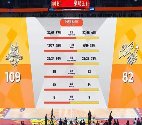 當臨沂奧體公園體育館的終場哨聲劃破夜空,記分牌上109-82的比分定格了一場酣暢淋漓的勝利。山東高速男籃用一場統治級的表現,為本賽季臨沂主場之旅畫上圓滿句號,同時將連勝紀錄刷新至八場,在CBA常規賽的征程中寫下濃墨重彩的一筆。這場勝利不僅是數據的碾壓,更是團隊凝聚力的極致展現,三外援合砍72分的火力狂潮,第四節18-0的窒息式攻擊波,讓所有現場球迷見證了齊魯鐵軍的鐵血風采。