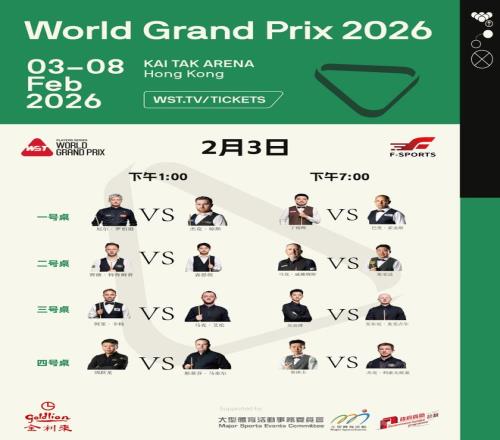 圖為2026斯諾克世界大獎賽2月3日對陣圖