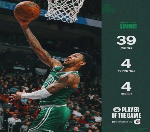 除此之外,新援安芬尼-西蒙斯的表現也能大吹特吹,勢頭直奔最佳第六人獎項,本賽季至今出戰40場全部替補,場均上陣24.3分鐘,貢獻14.1分2.4板2.6助,場均以40.5%命中率扔進2.7記三分球,當今凱爾特人最重要的第二陣容火力輸出點。