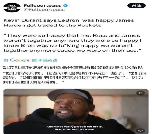 哈登應該是三少里面唯一不會后悔離開俄克拉荷城的,之前接受采訪談到相關話題時,表示2012年夏天被雷霆交易到火箭改變了他的人生,否則其可能無法成為現在的自己。