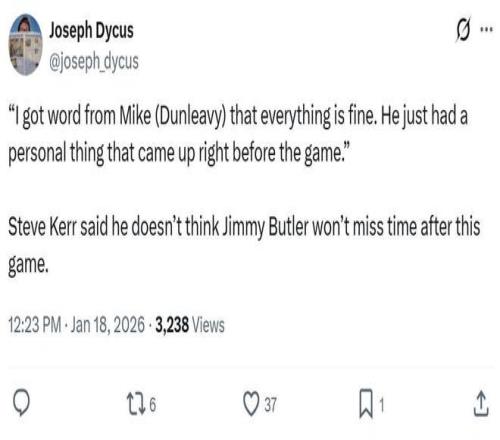 賽后科爾表示自己已經從總經理邁克-鄧利維那里知曉了一切,巴特勒只是比賽前遇到了一些私事,不會錯過接下來的比賽。