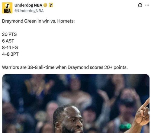 生涯至今,當追夢單場至少拿到20分時,勇士隊戰績為28勝8負。