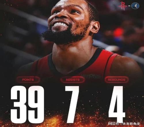 另一邊,火箭隊以110-105險勝森林狼隊,戰績反超湖人隊,升至西部第五。此役,背靠背出戰的杜蘭特展現出了超凡的實力,他亮相40分鐘,投籃18次命中11球,三分球8投6中,高效砍下39分,并貢獻4個籃板、7次助攻、2次搶斷和1次蓋帽,成為的最大功臣。盡管杜蘭特也已經37歲,但在休斯頓,他依然被當作球隊的核心來使用,承擔著巨大的比賽壓力。