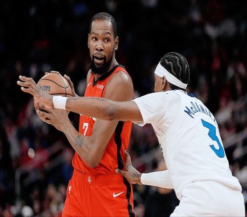 在上個賽季為菲尼克斯太陽隊效力的62場比賽中,杜蘭特僅有10場比賽的出場時間超過了40分鐘。而本賽季,杜蘭特僅在迄今為止的37場比賽中就已經7次突破了這個大關。自12月1日以來,杜蘭特的場均上場時間高達38.7分鐘,更令人發指的是在上一場對陣缺少安東尼-愛德華茲的殘陣明尼蘇達森林狼隊的比賽中,火箭隊也需要杜蘭特出戰40分鐘才能最終確保獲得比賽的勝利。