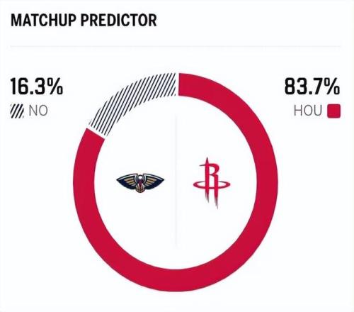 賽前,美媒ESPN對本場比賽進行了勝率預測,火箭隊勝率依舊高達83.7%,占據絕對上風,鵜鶘勝率則僅有16.3%,還是不被看好。