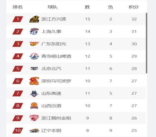 遼寧隊近期遭遇二連敗,排名第10,其實按照勝率計算遼寧隊的真實排名會更低,目前遼寧隊是8勝9負(fù)積25分,勝率47.1%;浙江稠州隊是9勝7負(fù)也是積25分,勝率56.3%。浙江稠州隊在少賽一場的情況下和遼寧隊積分相同,雖然在雙方互相勝場方面吃虧,但是不管接下來這一場比賽浙江稠州隊是否能夠拿下,他們的積分排名都會在遼寧隊前面。